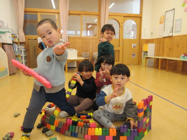 最近では、お友達と一緒に遊ぶことが楽しい様子の子どもたちです!協力して一つの物を作ったり、一冊の絵本を共有して見たりと友達との関わりが成長していると感じます。会話の幅も広がり毎日賑やかに過ごしています!